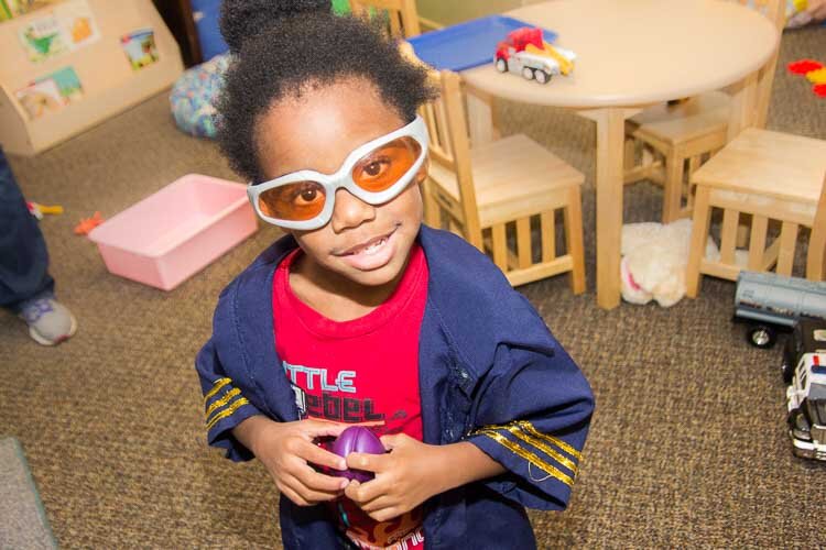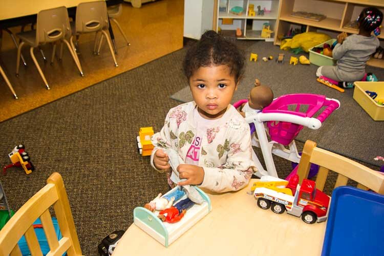 A child plays at the Kalamazoo Drop-In Child Care Center.
