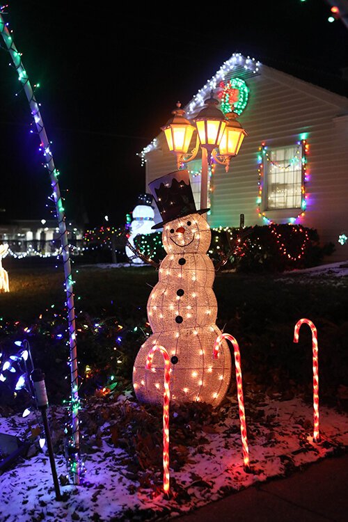 “We want people to walk through our display, that’s our goal,” says Gurski. “Sometimes when little kids come by I can hear them amazed by the lights as they go under the arches. I have a little bowl of candy canes for the little ones when I can go outside and catch them in time.”
