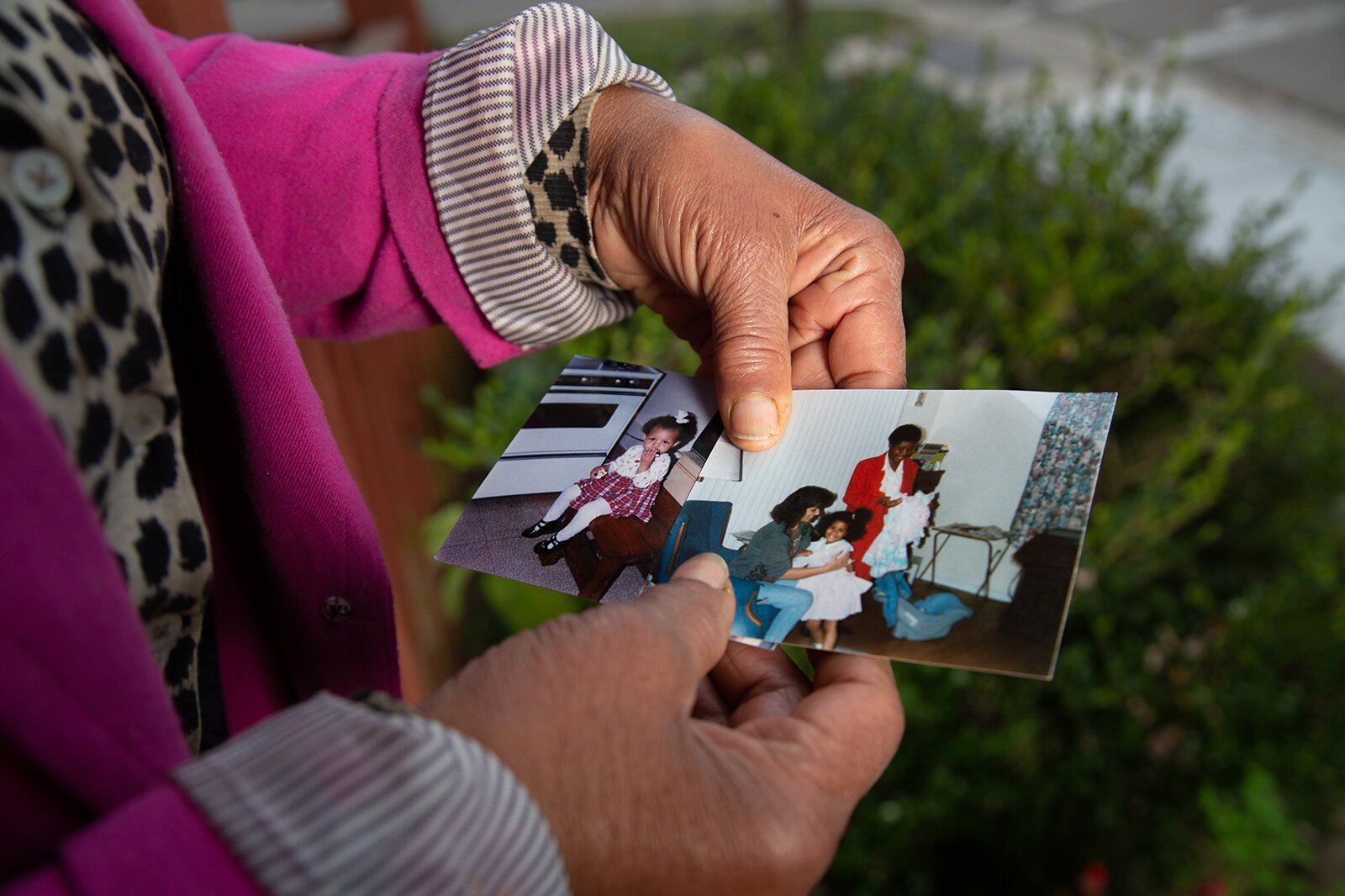 Autumn Johnson-Pierce – Yvonne Woodard holds a photo of her children.