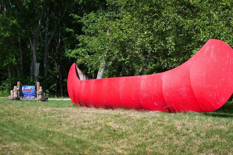 “We tell people to look for the giant red canoe in the front yard,” says Anderson of the 30-foot structure signifying the business’s address.