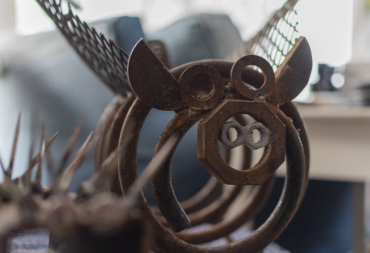 Pieces from her artistic welding collection include a pig with wings, bird sculpture, yard decorations, and tables all made from scrap metal. She has even sold pieces at several art fairs, yet she welds only for the purpose of making things that make her smile.