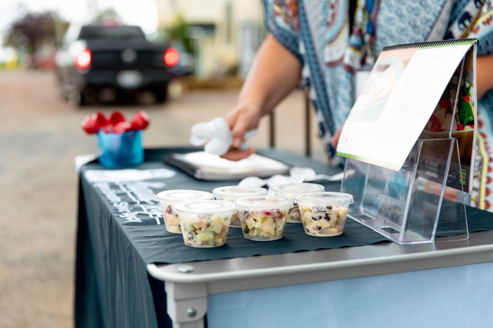 Jacob Gorton – MARESA Nutrition Educator Michelle Granger sets up a food taste test at the CSA pickup.
