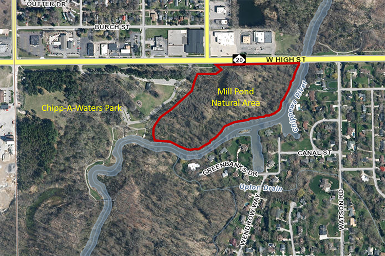 Photo Courtesy of the Chippewa Watershed Conservancy – The Mill Pond Natural Area is within walking distance to Central Michigan University in Mt. Pleasant. (Photo Courtesy of the Chippewa Watershed Conservancy)