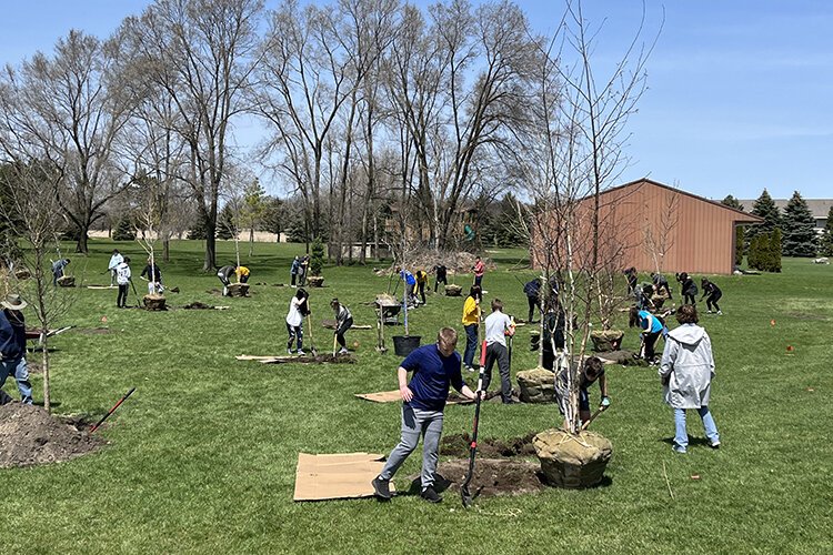 Two classrooms of eighth-graders at Mount Pleasant Middle School had the opportunity to help increase the local tree canopy by working with Trees NOW Isabella to plant trees at the school this Arbor Day.