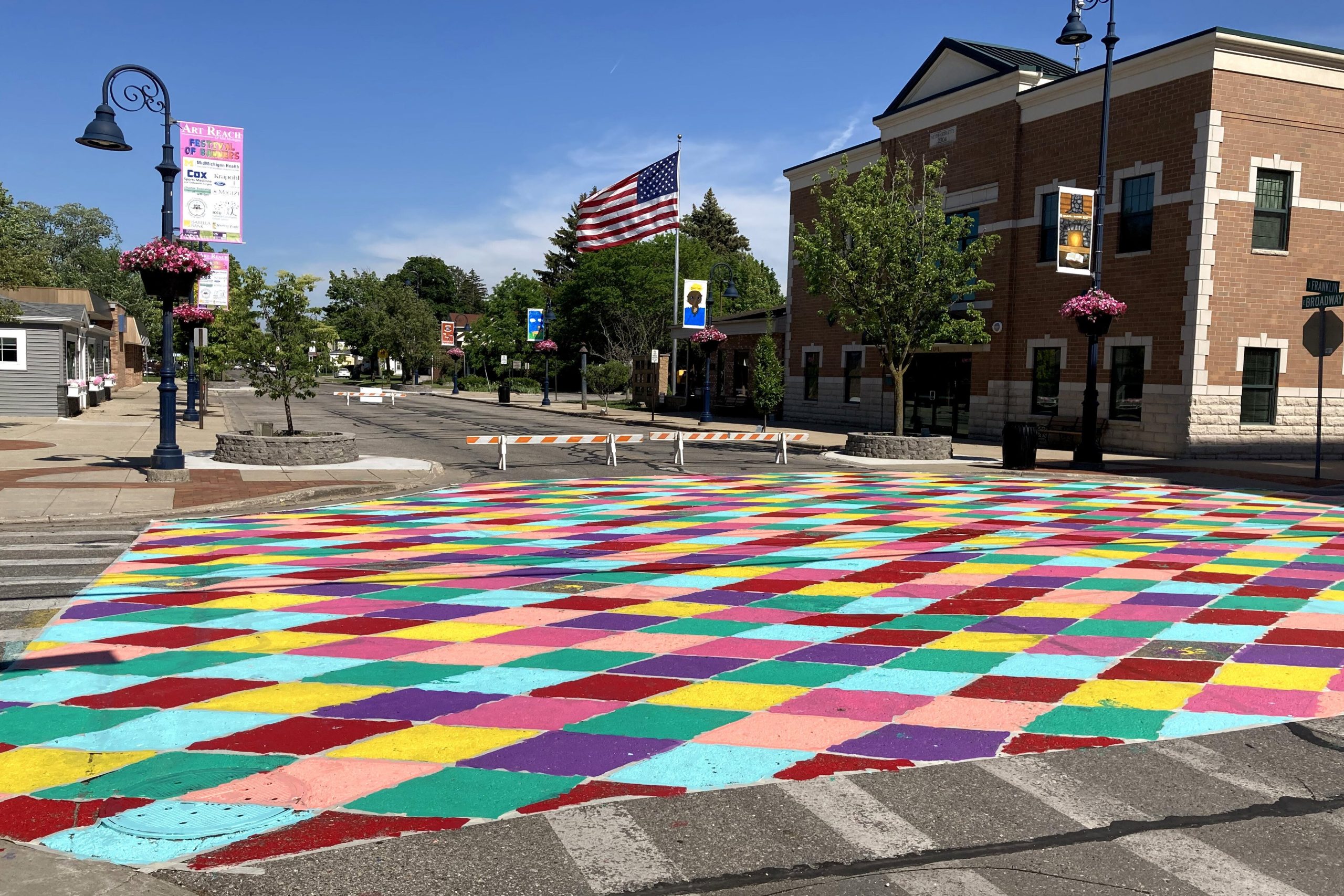 Three intersections along E. Broadway St. – S. Main St., S. University Ave., and S. Franklin St. – will be given a facelift by participants as they apply colorful paints to pre-taped geometric designs.