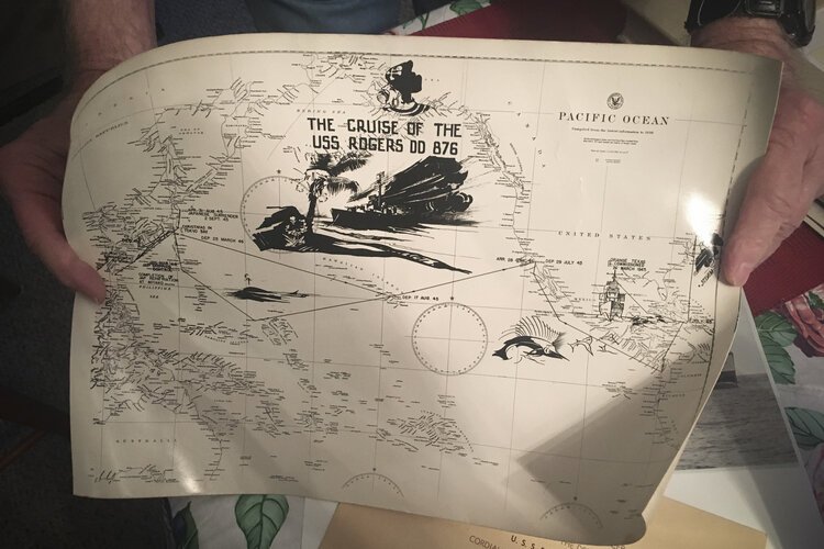 “After doing various things in the Atlantic, we went through the Panama Canal to the Pacific,” says Meabrod. “We were in Pearl Harbor. We were scheduled to leave Pearl Harbor and join the fleet for the invasion of Japan and that’s when they dropped the bomb.”